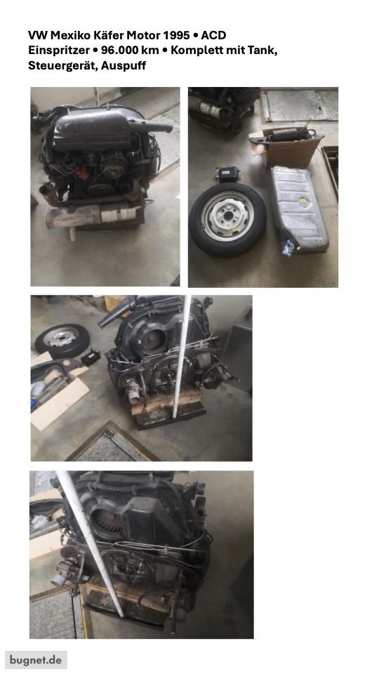 VW Mex Käfer Motor 1995 • ACD Einspritzer • 96.000 km • Tank, Steure., Auspuff VW Mexiko Käfer Motor 1995 • ACD Einspritzer • 96.000 km • Komplett mit Tank, Steuergerät, Auspuff Ich biete hier einen kompletten Motor - ohne Schwungscheibe aus einem VW Mexiko Käfer Baujahr 1995 (EZ 25.10.1995) mit ca. 96.000 km Laufleistung. Es handelt sich um den ACD-Einspritzmotor mit Katalysator – also die seltene und gesuchte Variante. Zum Set gehören: Motor (ACD, Einspritzer) - ohne Schwungscheibe Tank mit Benzinpumpe Abgasanlage inkl. Katalysator Motorsteuergerät Anlasser diverse Sensoren und Kleinteile, orig. Ersatzrad Der Motor lief bis zum Ausbau einwandfrei, zuverlässig und wurde regelmäßig gewartet. Kein Ölverlust, keine Startprobleme – trocken und gepflegt. Der Ausbau wurde von der Firma Voltimer von einer Kfz-Fachwerkstatt im Zuge der Umrüstung auf einen Elektroantrieb vorgenommen (www.voltimer.de). Ideal für Umbau, Restauration oder als Ersatz für defekte Einspritzmotoren. Das Fahrzeug hat vor dieser Umrüstung im Februar 2025 die turnusmäßige TÜV-Untersuchung bei Dekra Hamburg erfolgreich absolviert („0hne festgestellte Mängel“). Preis: 2.222 € VB Abholung in 84326 Falkenberg (Nähe Dingolfing), alternativ Speditionsversand deutschlandweit für ca. 300,00 Euro möglich. Privatverkauf, keine Garantie oder Rücknahme. Gemäß § 19 UStG wird keine Umsatzsteuer berechnet Bei Interesse oder Fragen gerne melden! Es können hochaufgelöste Einzelbilder der Teile zur Verfügung gestellt werden. |
