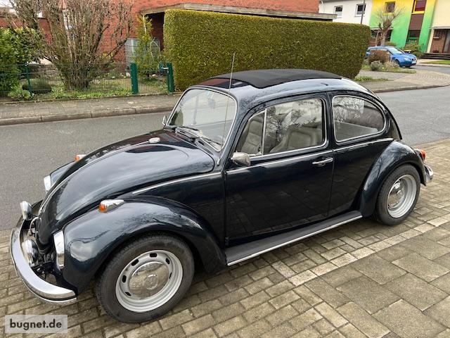 VW Käfer, Faltdach mit zeitg. Tuning, Top Zustand Hier gibt es einen tollen VW Käfer, der absolut alltagstauglich ist. Es ist ein Mexiko Käfer Bj 83, der vor ca. 8 Jahren komplett restauriert, lackiert worden ist ( dunkelblau, metallic) und optisch zu einem 1302 umgebaut wurde. Der Innenraum wurde aufgearbeitet, mit Sportsitzen von König, Sportlenkrad, Armaturenbrett mit Zusatz Instrumenten, Retro Radio und mit Leder versehen. Ein Faltdach mit Stoffbezug wurde eingebaut. Die Technik wurde komplett neu gemacht und ein zeitgenössisches Tuning wurde verbaut. Motor: Typ 1 mit 1836 ccm, 40 Doppel Weber Vergaser, ca 110 PS. Zusätzlicher Ölkühler wurde verbaut. Er läuft wie ein Uhrwerk. 4 Gang Schaltgetriebe, kurz übersetzt, Kupplung von Sachs wurde letztes Jahr erneuert. Scheibenbremsen vorne, verstellbare Vorderachse, Fahrzeug wurde dezent tiefer gelegt. Vorne 5,5 x 15 und hinten 7x 15 Stahlfelgen mit Radkappen verbaut. Er hat ein H-Kennzeichen, und all diese Dinge sind eingetragen. Nach Ostern bekommt er frischen TÜV für 2 Jahre. Der Käfer ist wirklich in einem tollen Zustand. Kein Rost, keine Beulen und unfallfrei. Wie gesagt, absolut alltagstauglich, reinsetzen Schlüssel umdrehen und bei offenen Verdeck die Sonne genießen. Preis: 19990.- Vhb Folgender Text wurde vom Verkäufer am Freitag, 27.Maerz 2026 um 20:57:43 Uhr hinzugefügt: