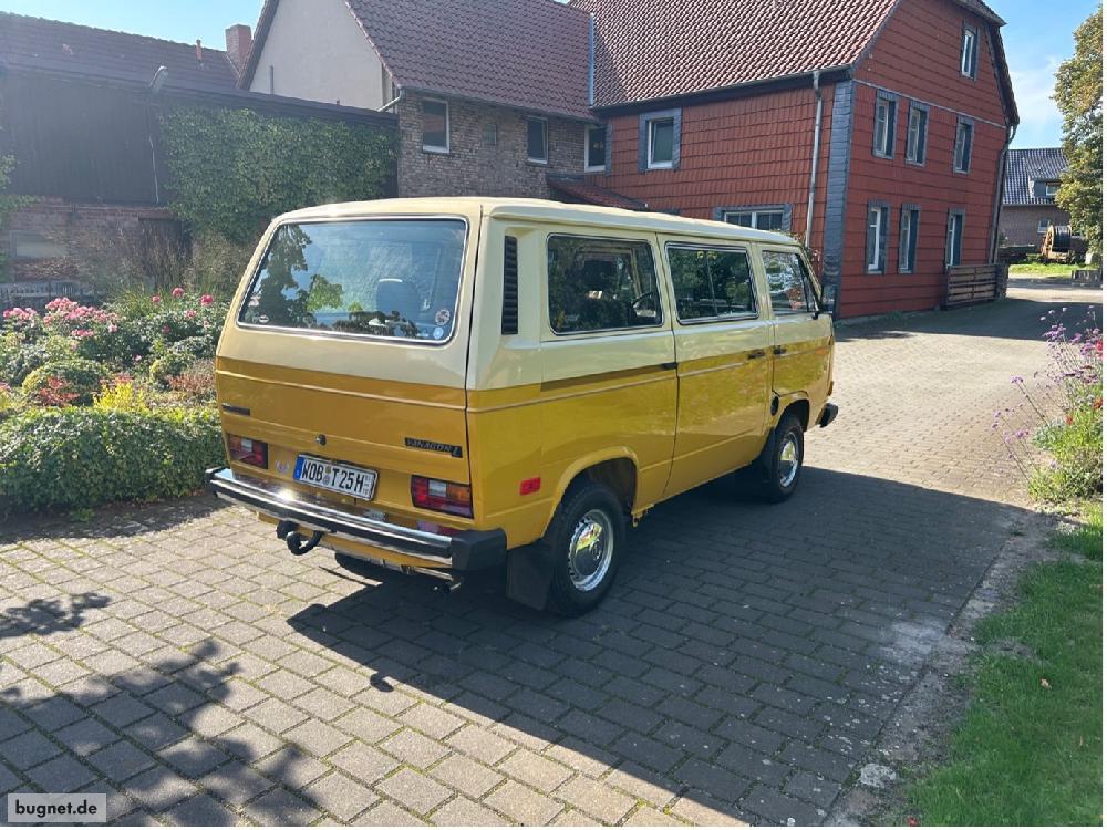 Volkswagen T3 Vanagon 1982 VW T3 Vanagon L, 2.0L Typ 4 luftgekühlt / 80 PS Einspritzer mit G-KAT (L-Jetronic), 4 Gang Handschaltung, Laufleistung des Motors / des T3 nach Restaurierung: ca. 1000 km. Mit deutscher Zulassung und H-Kennzeichen, HU 3/2027, a.W. neu. Der T3 wurde bereits 2012 aus dem kalifornischen Inland importiert und in Deutschland vorerst trocken eingelagert. 2020 wurde er behutsam zurück auf die Straße geholt – der Lack wurde aufbereitet und poliert, der Unterboden mit Trockeneis gestrahlt. Die Technik wurde weitestgehend überholt, d.h. Stoßdämpfer, Bremsen und Bremsenteile, Traggelenke, Spurstangenköpfe, Gummilager, Manschetten, Schläuche, der Tank, Kraftstoffpumpe, Anlasser (adaptiert auf starken TDI-Anlasser), Antriebswellen, Heizung etc. wurden erneuert. Der Motor wurde durch ein Neuteil von Orratech ersetzt – die Rechnung dazu liegt vor. Die Anbauteile des Motors (Einspritzdüsen, Teile der Einspritzung, Steuergerät der L-Jetronic, KAT etc.) wurden ebenfalls erneuert. Es wurde ein 123-Verteiler mit Bluetooth-Anbindung (123 Tune+) für perfekte Motorabstimmung sowie ein Zeitrelais für den Kraftstoffkreislauf verbaut, um den Warmstart zu verbessern. Die Karosse ist weitgehend rostfrei, der originale Lack wurde im Laufe der Jahre an diversen Stellen ausgebessert und ist nicht perfekt, aber durchaus präsentabel. Die Frontscheibe sowie die Schiebefenster wurden erneuert, ebenso die Außenspiegel, die Stoßstangen samt Ecken und natürlich alle Tür- und Fensterdichtungen. Die Verriegelung der Schiebetür wurde ebenso wie die vorderen Fensterheber erneuert. Im Innenraum wurde neben einer intensiven Reinigung das Armaturenbrett ausgebaut und neu lackiert, sämtliche Verkabelung bereinigt, die Luftverteilung mit neuen Schläuchen versehen und der von einem Fachbetrieb überholte Instrumenteneinsatz samt gereinigter Schalter wieder zusammengebaut. Es ist ein Blaupunkt Bremen DAB+ Bluetooth- Radio verbaut – im Fersenbrett unter der Rückbank befinden sich dazu 2 MB Quart Lautsprecher und unter dem Fahrersitz ein nicht sichtbarer ETON Subwoofer, der im Zusammenspiel mit zwei flammneuen originalen (!) Tür- Lautsprechern für angenehmen Klang sorgt. Die Seitenverkleidungen der vorderen Türen wurden ebenfalls durch Neuteile ersetzt, genau so wie die braunen Türgriffe, Haltegriffe und Fensterkurbeln. Es wurden neue Rückleuchten (NOS VW), Sidemarker sowie H4-Scheinwerfer mit Osram H4 LED Vintage-Leuchtmitteln verbaut. Das US-Standlicht bzw. die vorderen Sidemarker sind zu Showzwecken manuell zuschaltbar. Der T3 fährt wie neu, der Motor fühlt sich souverän an, technisch ist alles tiptop. Rechnungen (u.a. des Motors) sowie Geburtsurkunde und Datenblätter von VW sind vorhanden. Weitere Fotos / Infos versende ich gerne per Mail. Er steht wegen einer Neuanschaffung zum Verkauf, VB 19500,- EUR.
